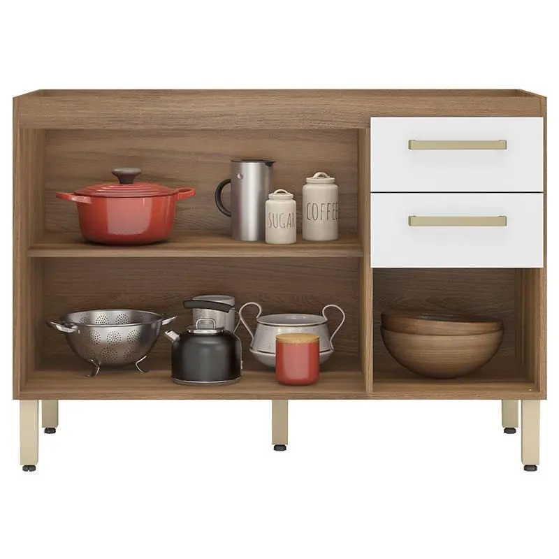 - 2 gavetas espaçosas com corrediças telescópicas suaves (geralmente metálicas), ideais para talheres, panos e itens do dia a dia.