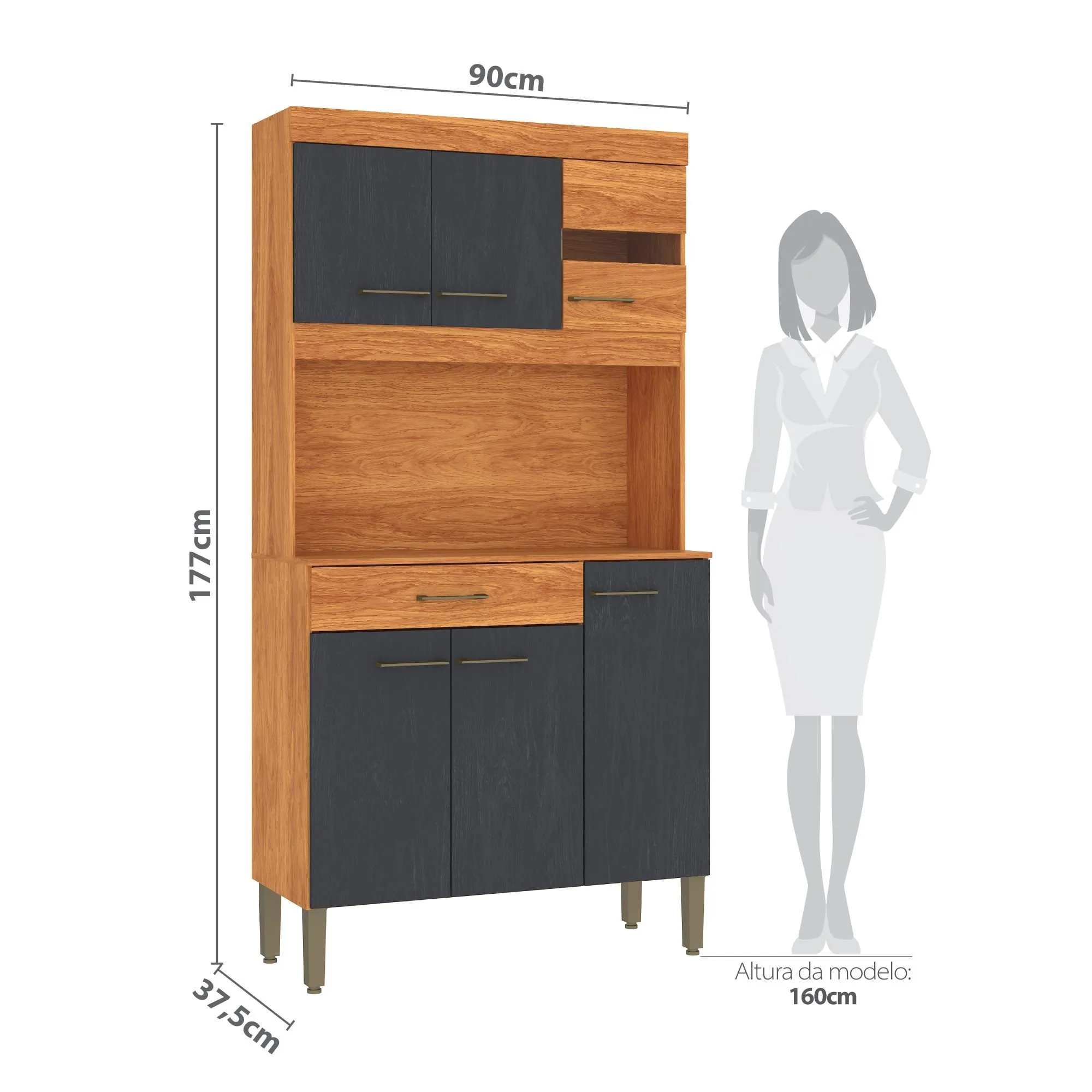 • 6 portas amplas (incluindo 1 porta com vidro temperado para expor itens decorativos ou louças) • 1 gaveta prática com corrediça suave para talheres e utensílios do dia a dia • Estrutura robusta em MDP de alta resistência com acabamento em pintura UV (mais durável e fácil de limpar) • Puxadores em material resistente e design moderno • Prateleiras internas ajustáveis para melhor aproveitamento do espaço • Ideal para apartamentos, cozinhas gourmet compactas ou áreas de serviço • Dimensões aproximadas: Largura 90 cm × Altura 177 cm × Profundidade 38 cm (modelo padrão da linha)